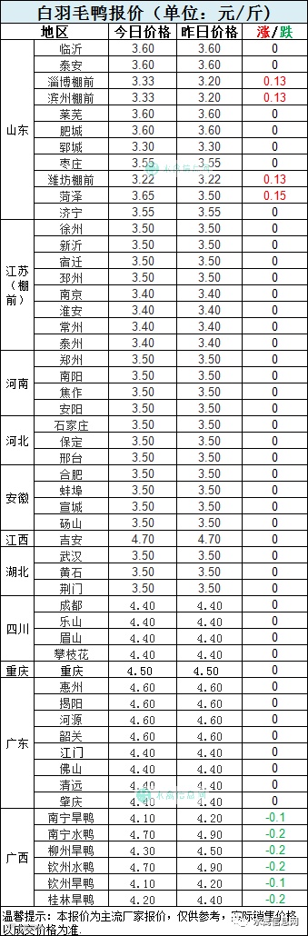 1:今晚分割鸭区域,山东棚前继续上涨,其他区域暂稳。