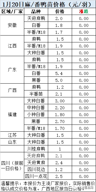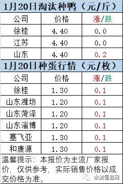 一、1月19日晚至1月20日 白羽肉鸭报价