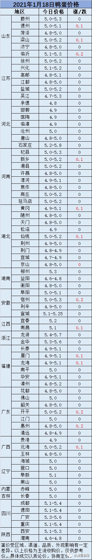 【鸭蛋价格】2021年1月18日鸭蛋报价:陆续上涨。 益牧堂水禽信息
