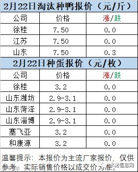 一、2月21日晚至2月22日 白羽肉鸭报价