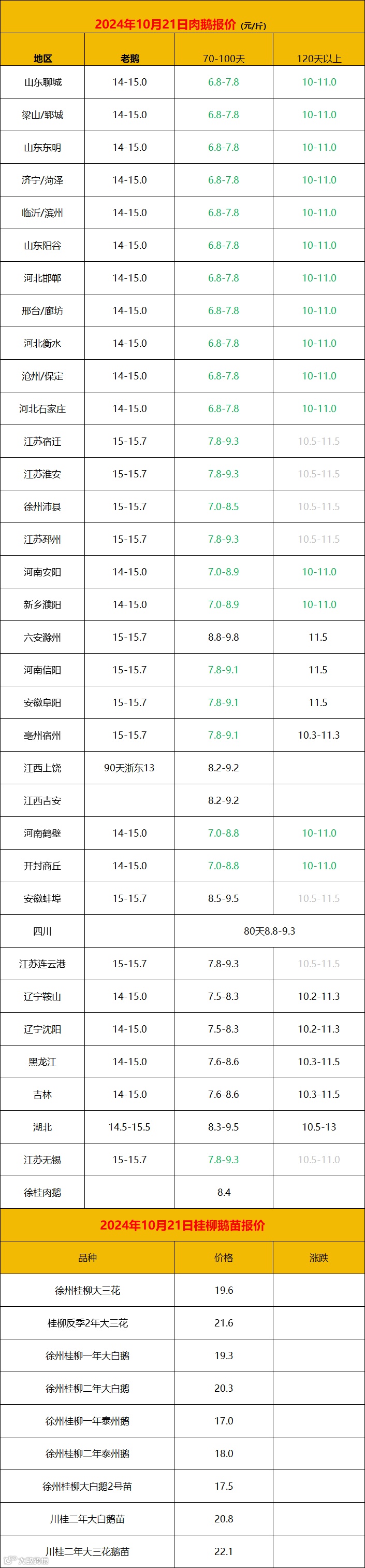 2024年10月21日鹅价快报