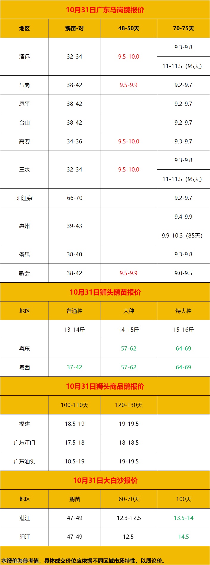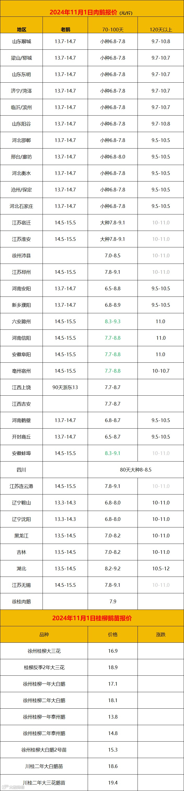 2024年11月1日鹅价快报