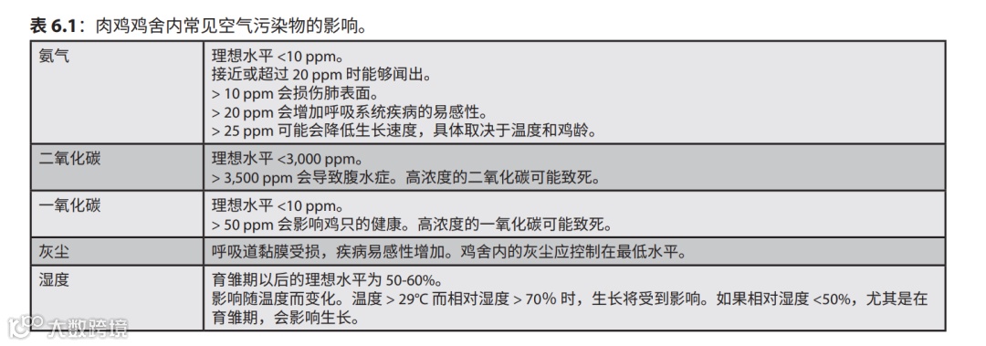 注意,以上表格是地面养殖的数据,目前我们国家目前超过90%是笼养鸡舍,国外肉鸡目前绝大多数还是地面稻壳养殖,国内现有的资料很少,这样国外的研究资料就没法直接使用,只能稍微借鉴下,根据原理和实际情况来总结一些数据。