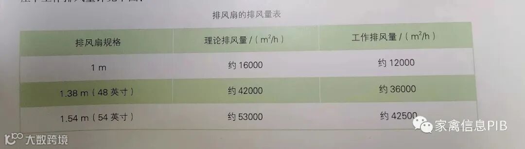 一栋养34000只白羽鸡,15日龄体重为0.526千克(利丰),我们使用48英寸的风机来通风,实际排风量约为36000立方米/小时。
