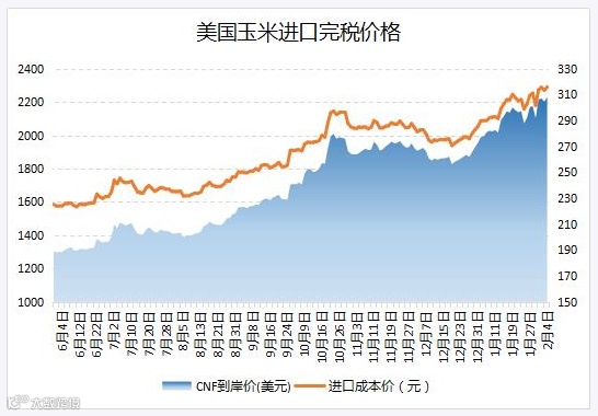 在截至1月29日当周,该合约大涨近50美分,因中国当周进行了三宗大型采购,买入近600万吨玉米。