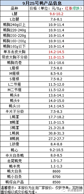 一、9月25日晚至26日 白羽肉鸭报价