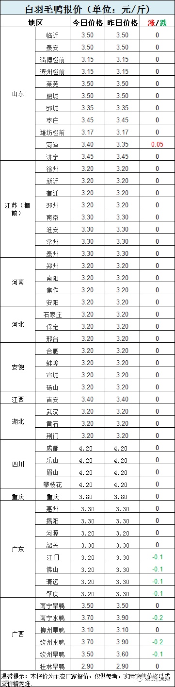 2:南方活禽区域,节前集中出栏,机构控盘严重,今晚局部地区毛鸭继续探底。(节前市场变化较快,报价混乱,报价仅供参考,以当面成交价为准)