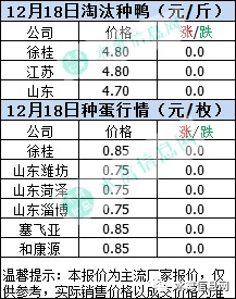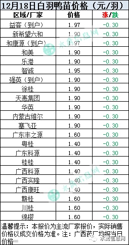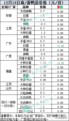 一、2020年12月18日白羽鸭苗报价;