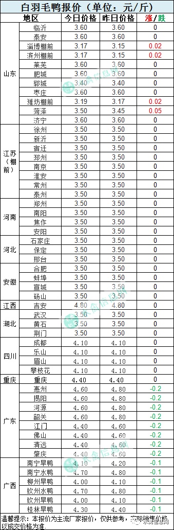 近两日鸭苗市场波动较大,各区域价格混乱,简易朋友们根据当地具体情况注意询价。