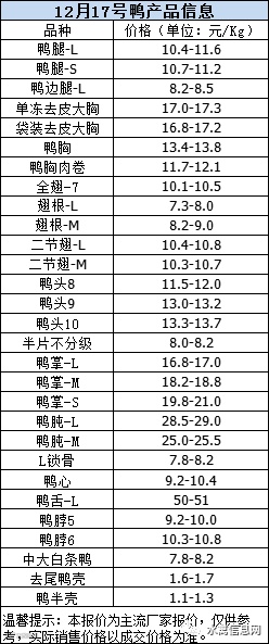 一、12月17日晚至18日 白羽肉鸭报价