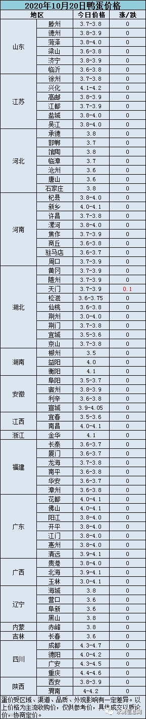 2020年10月20日淘汰蛋鸭价格参考值:5.6元/斤。受肉鸭活禽价格下跌影响叠加淘鸭增多种鸭淘汰乱市,淘汰蛋鸭持续弱势震荡。