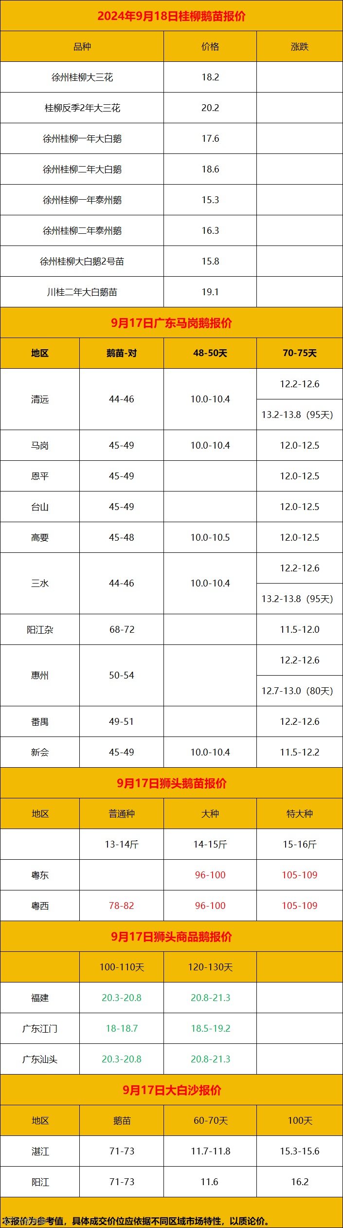 2024年9月17日鹅价快报