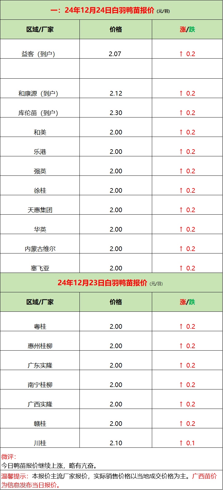 苗蛋连续上涨,产品备货波动!--2024年12月24日水禽行情简报