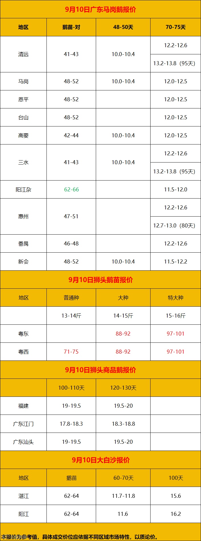 2024年9月10日鹅价快报