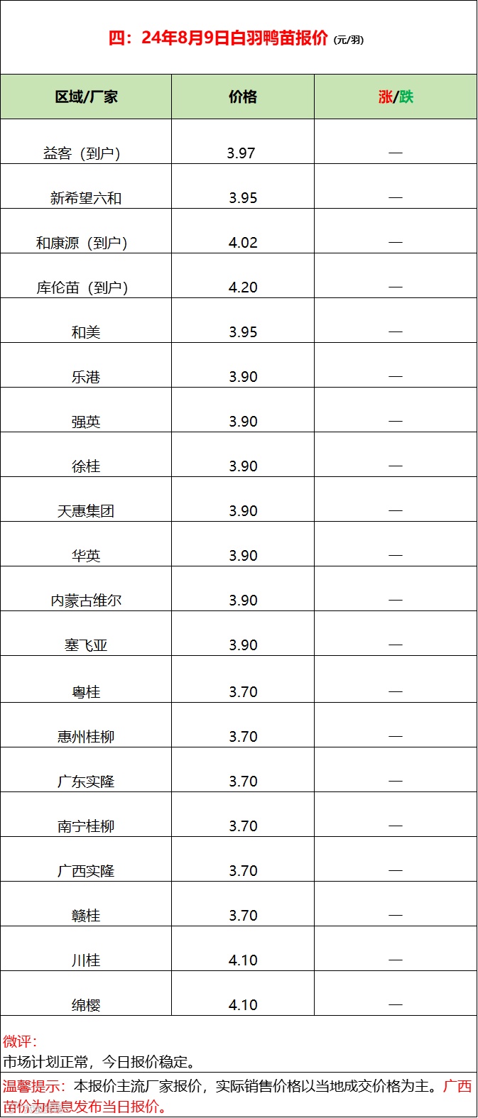 苗蛋暂稳,活禽下滑;--2024年8月9日水禽行情简报 益牧堂水禽信息