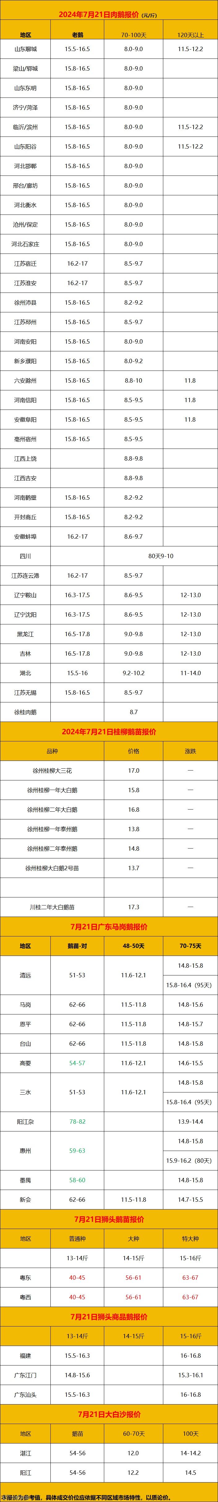 徐州淮安:一年三花种蛋7.2-7.4 泰州-种蛋6.9-7.1