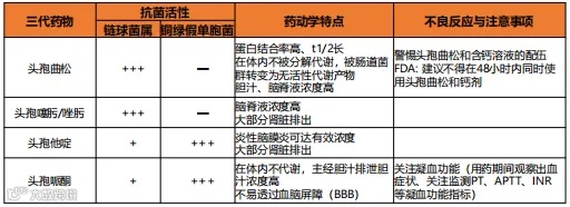 ▲PK/PD:半衰期短,大部分原型经肾脏排出,肾毒性小于1代,部分可过血脑屏障。