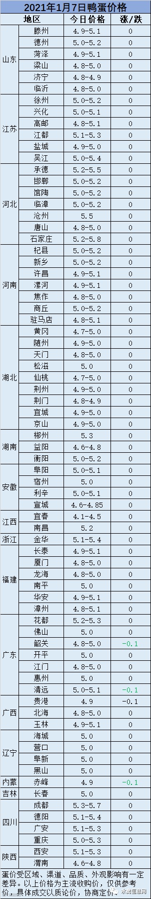 2021年1月7日鸭蛋报价