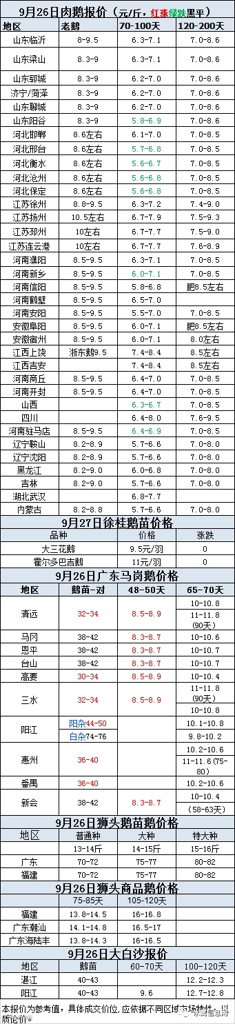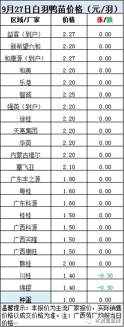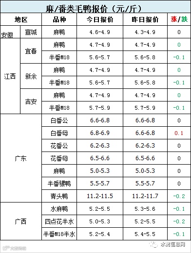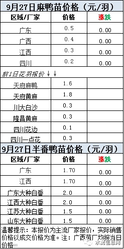二、9月25日 麻鸭苗、半番鸭苗报价;