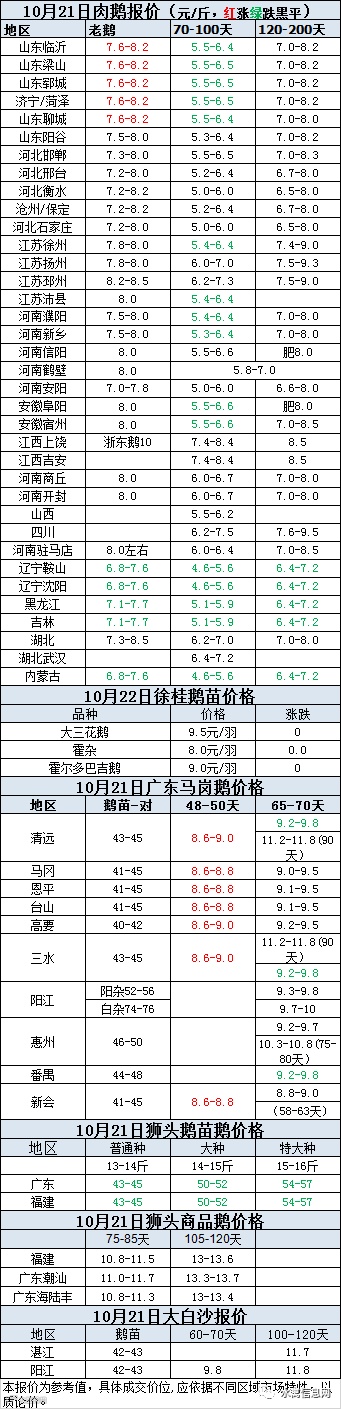 2020年10月21日商品鹅蛋价格(元/斤)