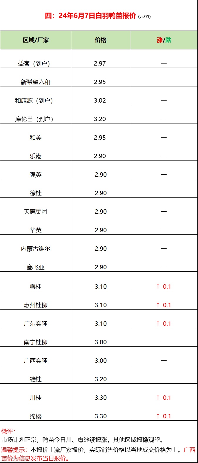 2024年6月7日水禽行情简报 益牧堂水禽信息