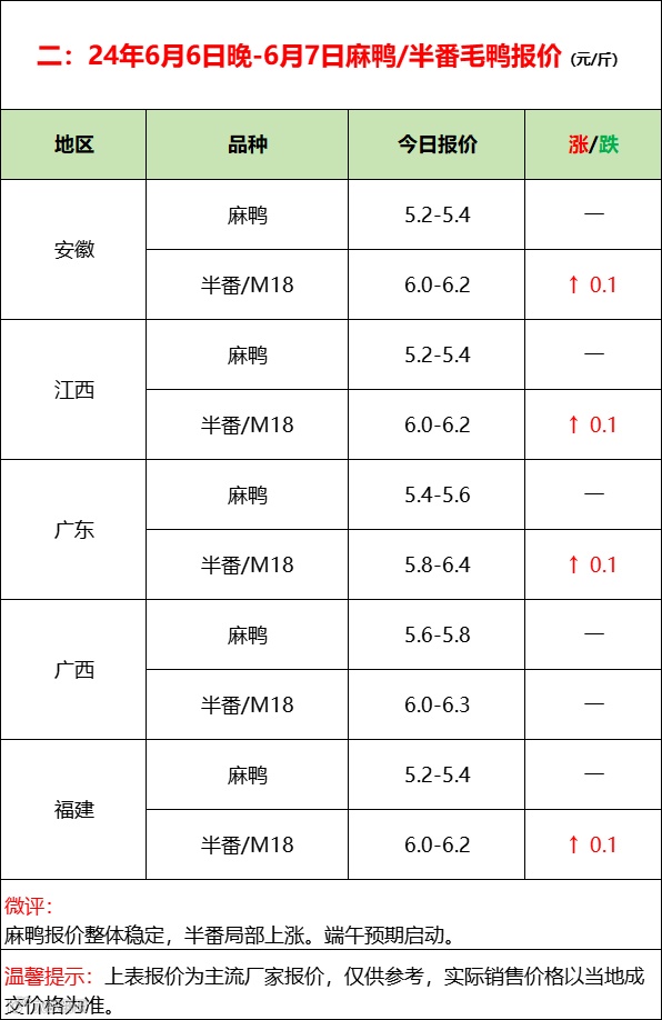 2024年6月7日水禽行情简报