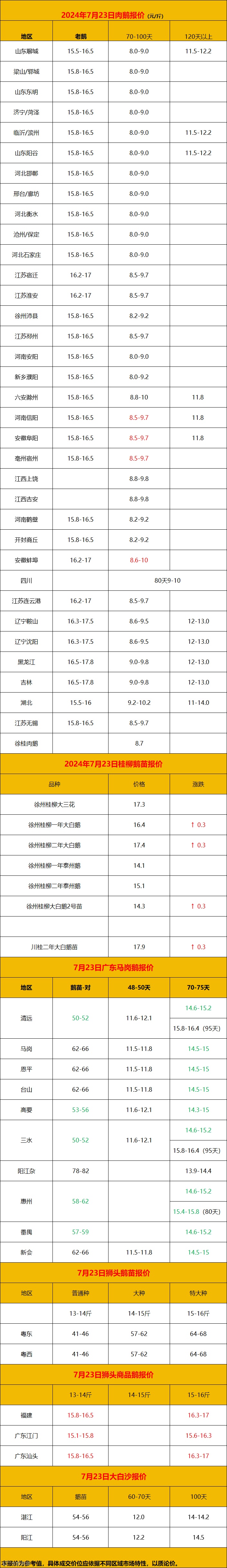 2024年7月23日鹅价快报