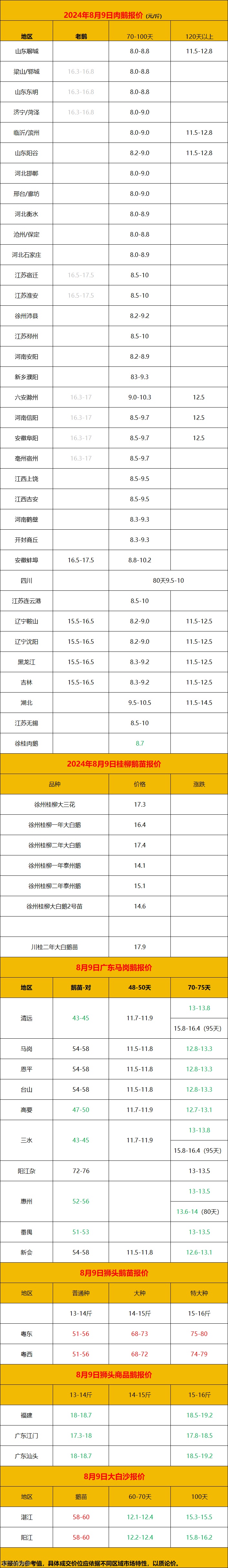 2024年8月9日鹅价快报