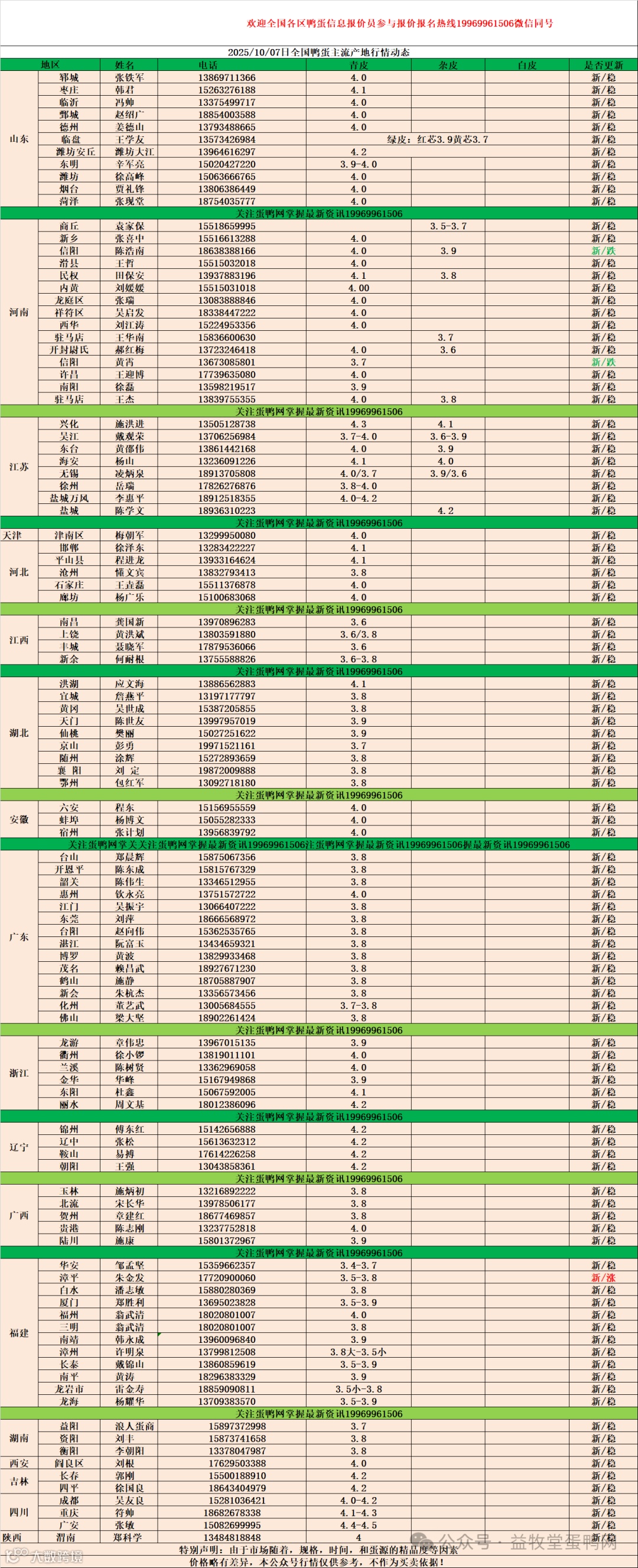 10月07日:初产至10个头2.7元,10个头至8个头3.4元,8个头至7.5个头3.7元,7.5个至大蛋4.2元。
