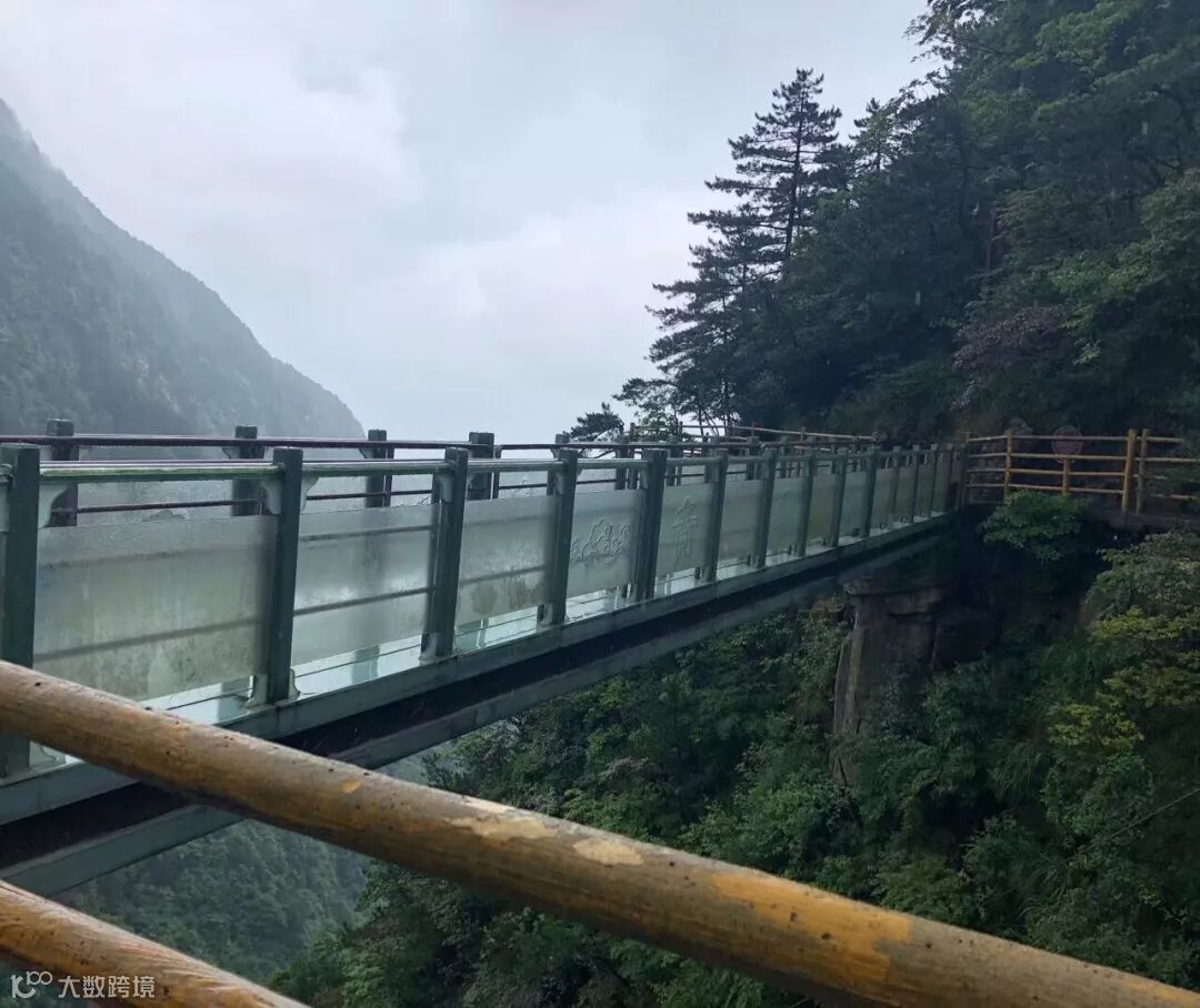 行走在这样的悬空栈道上,视野开阔,移步换景,赏心悦目。在云雾缭绕中,有平步青云之感。悬空的栈道横亘于悬崖峭壁上,从观景台走玻璃桥至青云栈道,心惊肉跳,刺激异常。