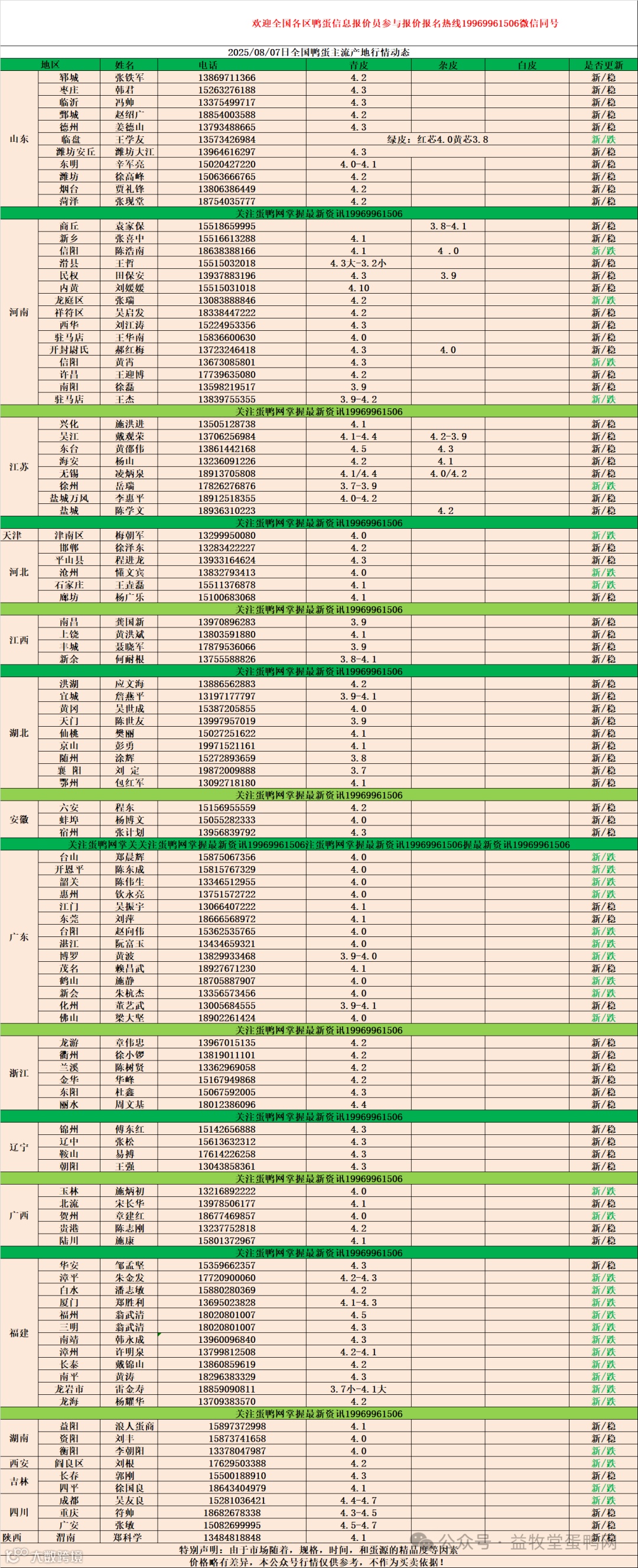 8月07日:初产至10个头2.5元,10个头至8个头3.4元,8个头至7.5个头3.9元,7.5个头至大蛋4.3元。
