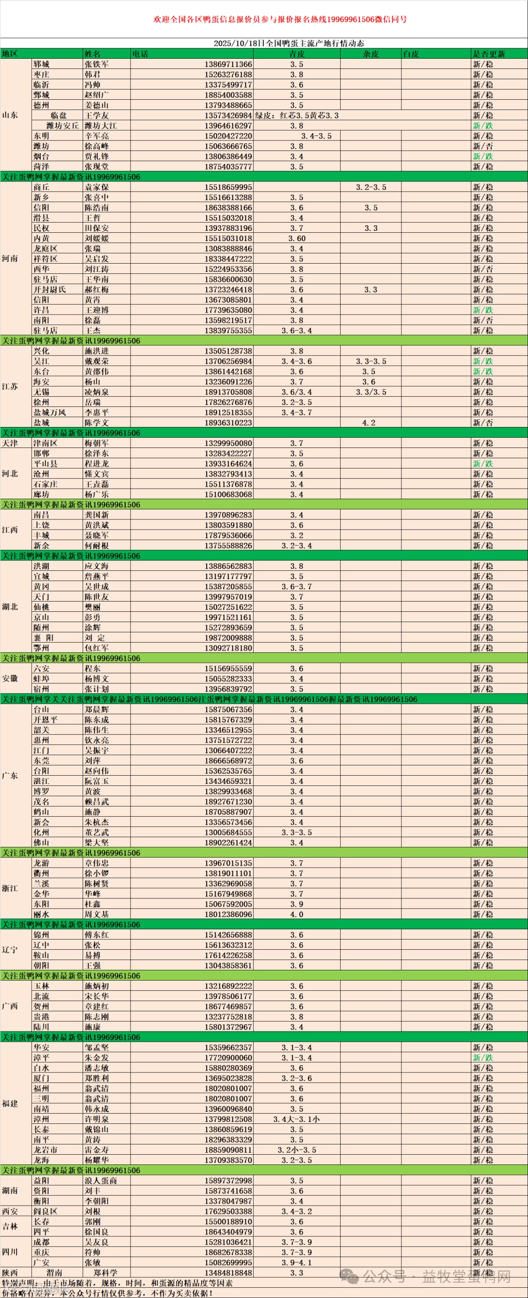 10月18日:初产至10个头2.7元,10个头至9个头3.0元,9个头至8个头3.1元。8个头至7.5个头3.4元,7.5个至大蛋3.6元。