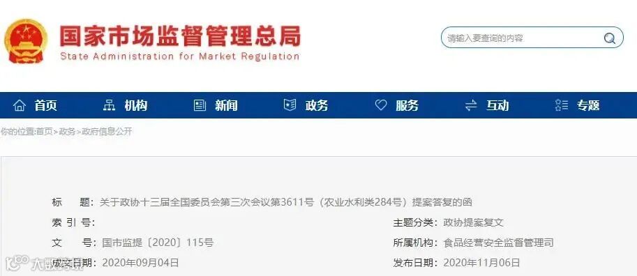 近日,市场监管总局在官网发布对这一提案的复文。