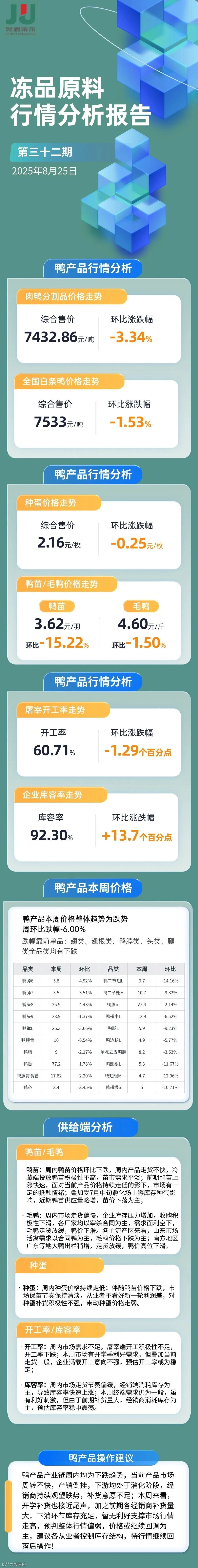 2025第32期冻品原料(鸭鸡猪牛)行情走势分析报告