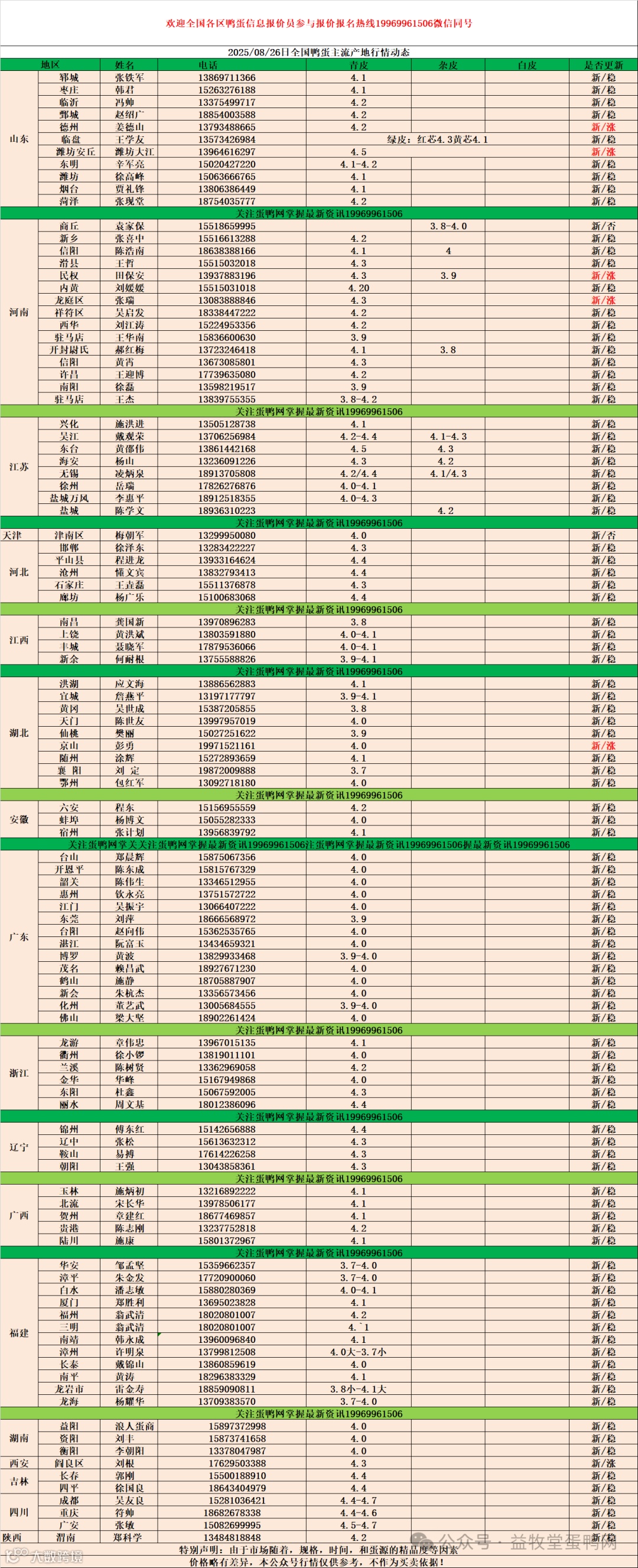 8月26日:初产至10个头2.7元,10个头至8个头3.5元,8个头至7.5个头3.9元,7.5个至大蛋4.4元。