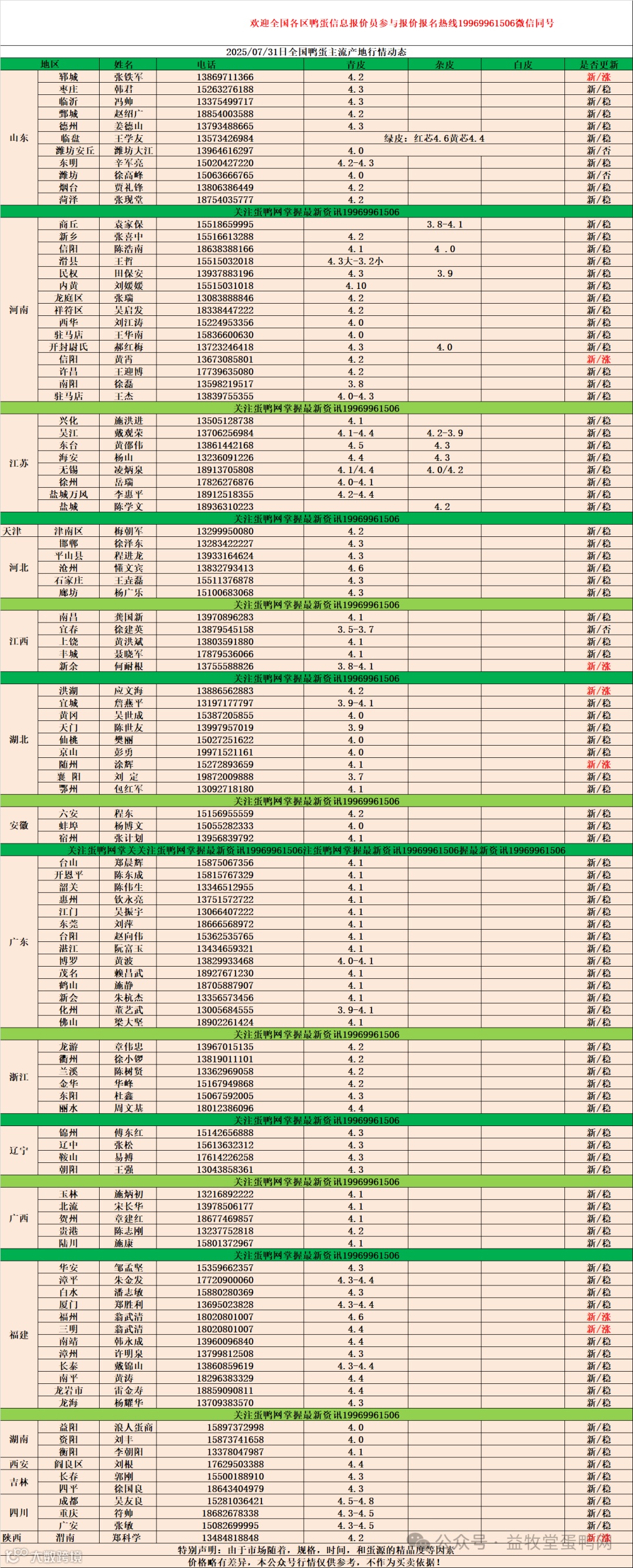 7月31日:初产至10个头2.5元,10个头至8个头3.4元,8个头至7.5个头3.9元,7.5个头至大蛋4.3元。