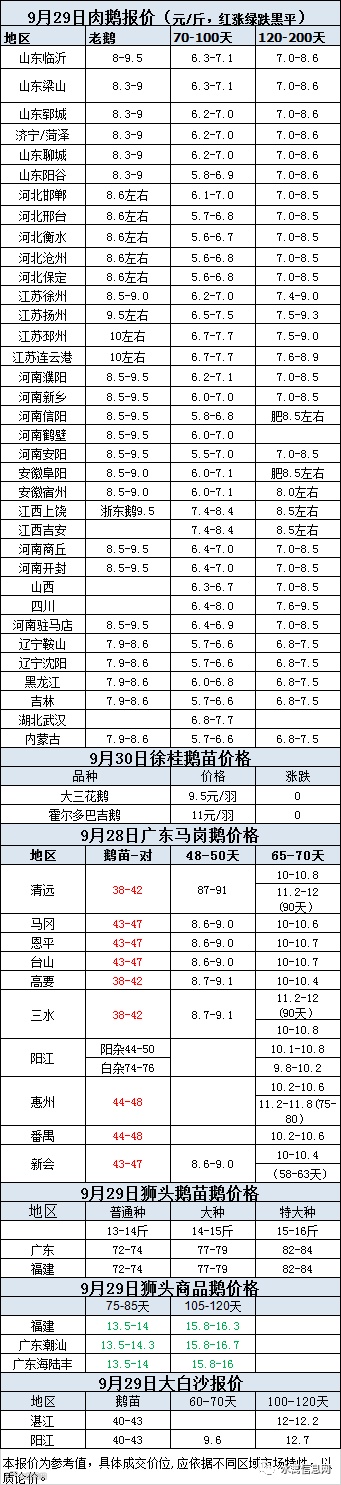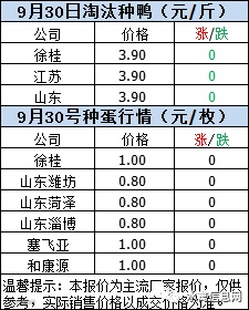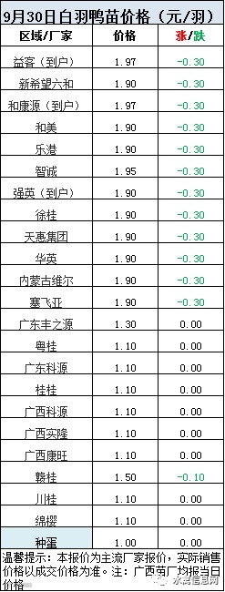 二、9月30日 麻鸭苗、半番鸭苗报价;