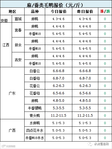 临近八月十五活禽出栏较为集中,叠加白鸭低价影响,麻鸭与半番鸭类价格持续弱势。今晚毛鸭报价暂稳,实际成交持续弱势。