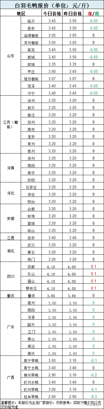 1:北方分割鸭区域,山东放假前压价报低,其他地区涨跌不一波动调整。北方以合同为主,当前冷藏库存充足,冻品价格提振乏力,市场鸭价弱势中震荡调整。(经济导报:出栏量全国第一!山东肉鸭产能过剩!无序发展!)