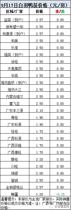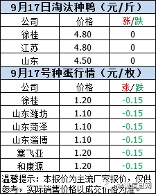 2020年9月17日鸭苗报价;