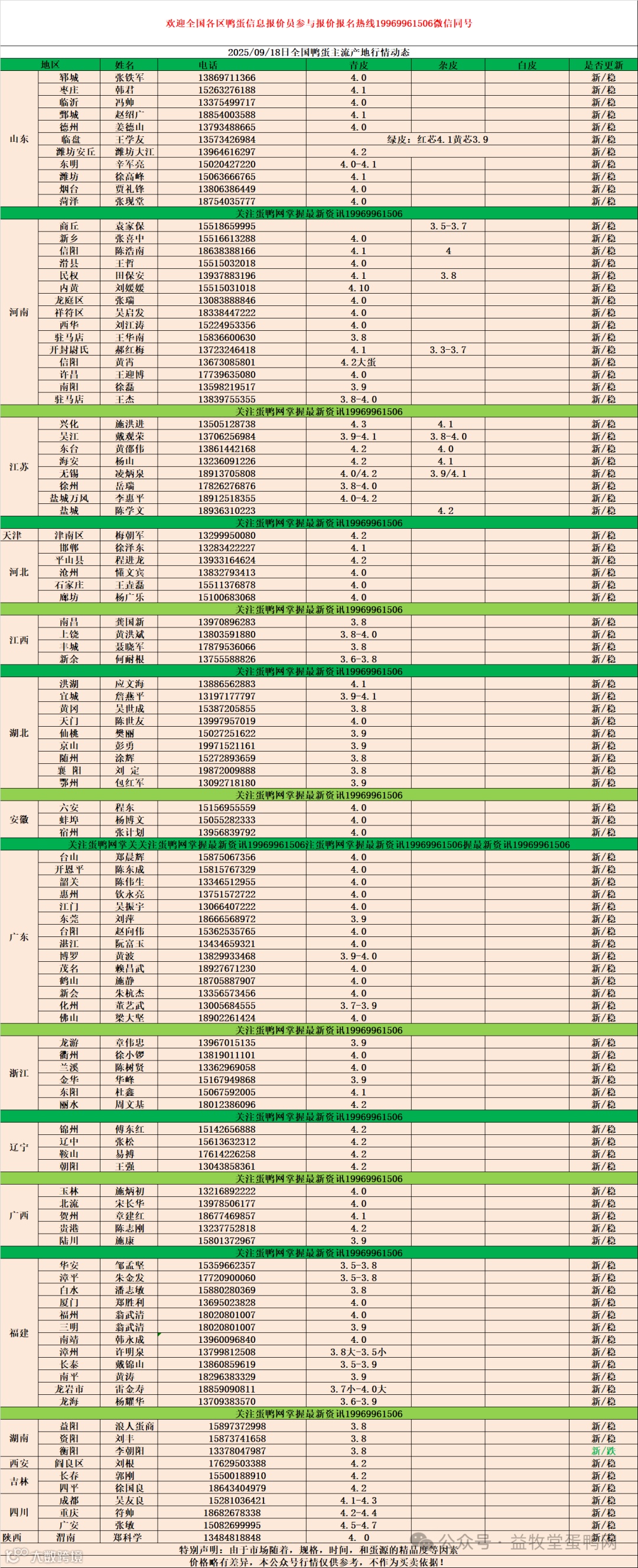 9月18日:初产至10个头2.7元,10个头至8个头3.4元,8个头至7.5个头3.7元,7.5个至大蛋4.2元。