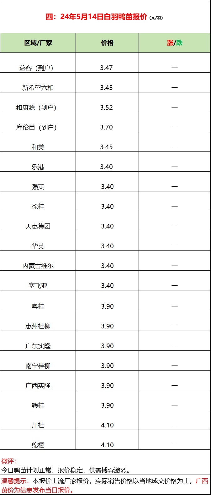 2024年5月14日水禽行情简报 益牧堂水禽信息