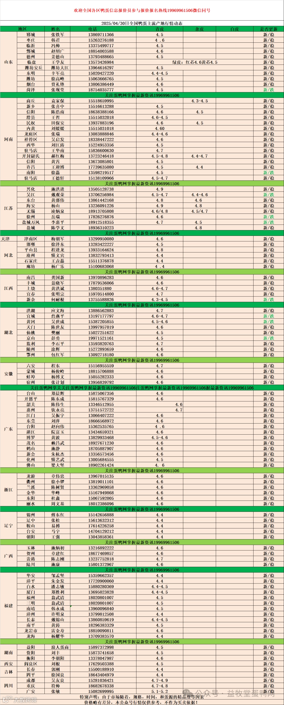 2025年4月30日商品鸭蛋报价 益牧堂水禽信息