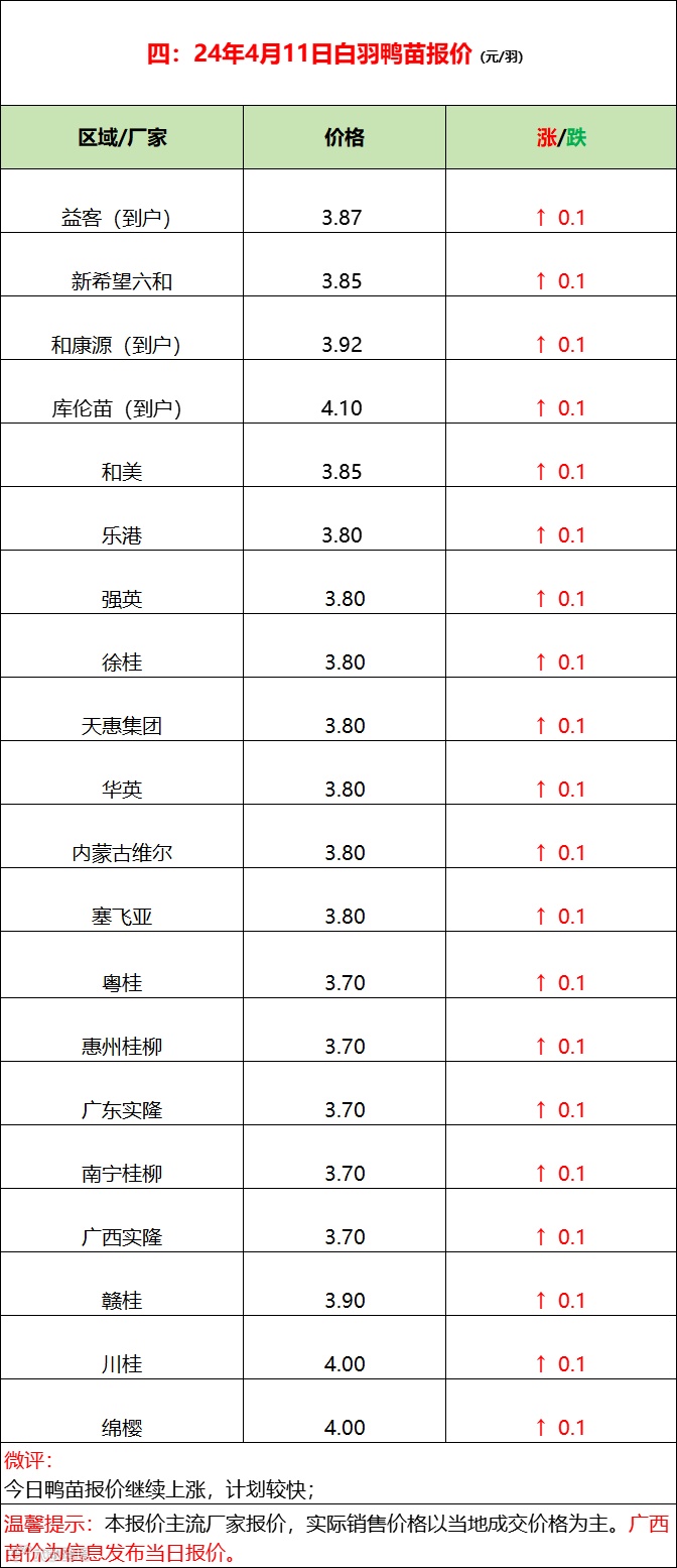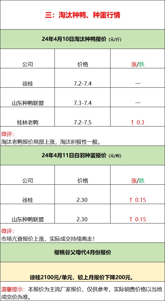 今日樱桃谷鸭苗继续上涨,市场计划较快;孵化情绪亢奋,种蛋成交高走。