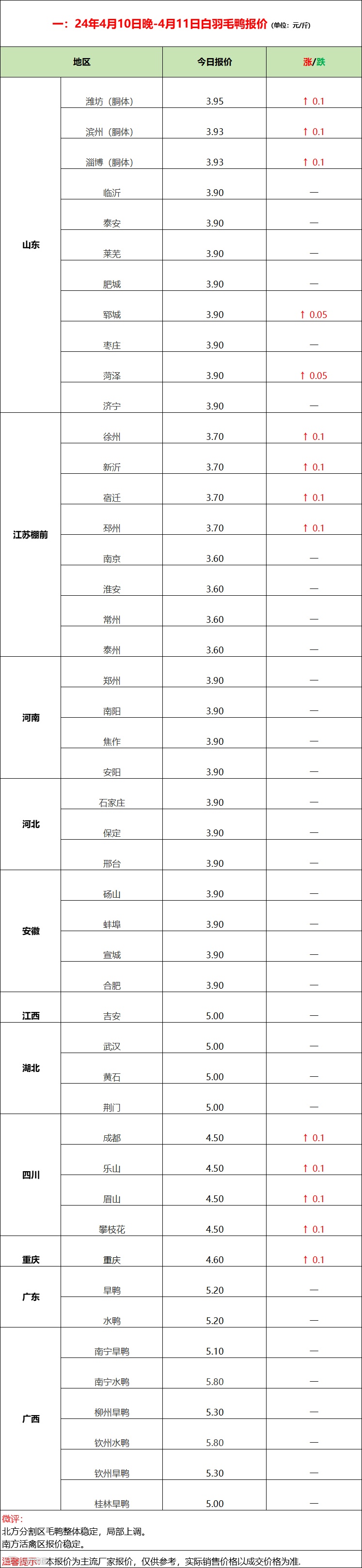 北方毛鸭局部上涨,屠宰以合同为主,对市场鸭支撑有限。南方活禽区报价走稳,成交平复。