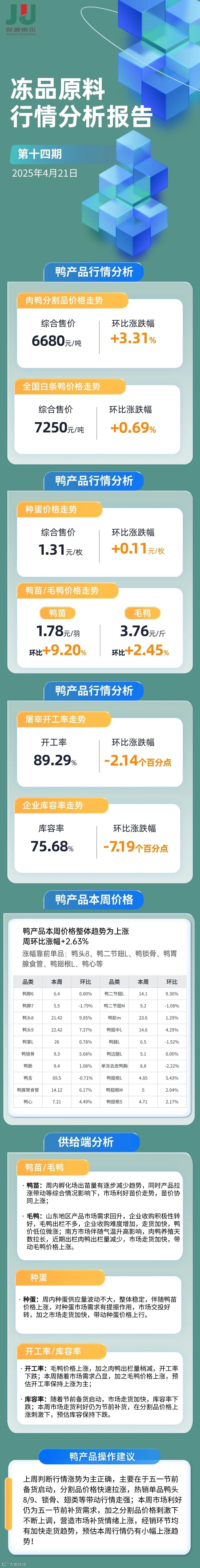 2025第14期冻品原料(鸭鸡猪牛)行情走势分析报告