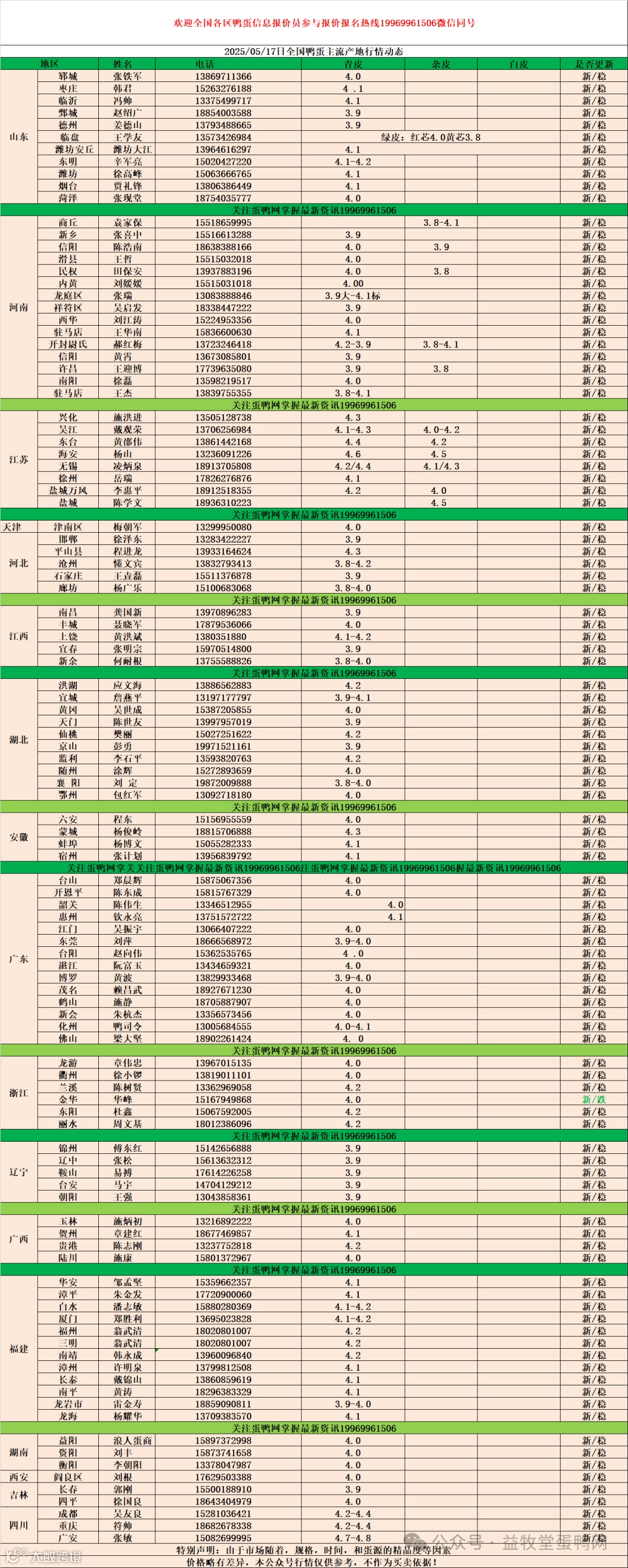 2025年5月17日商品鸭蛋报价 益牧堂水禽信息