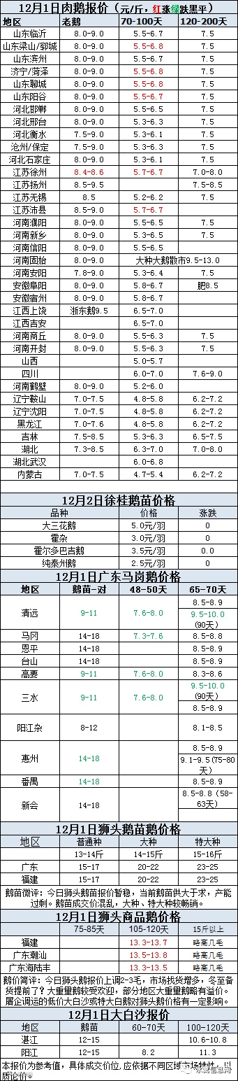 2020年12月01日鹅种蛋价格(元/枚)