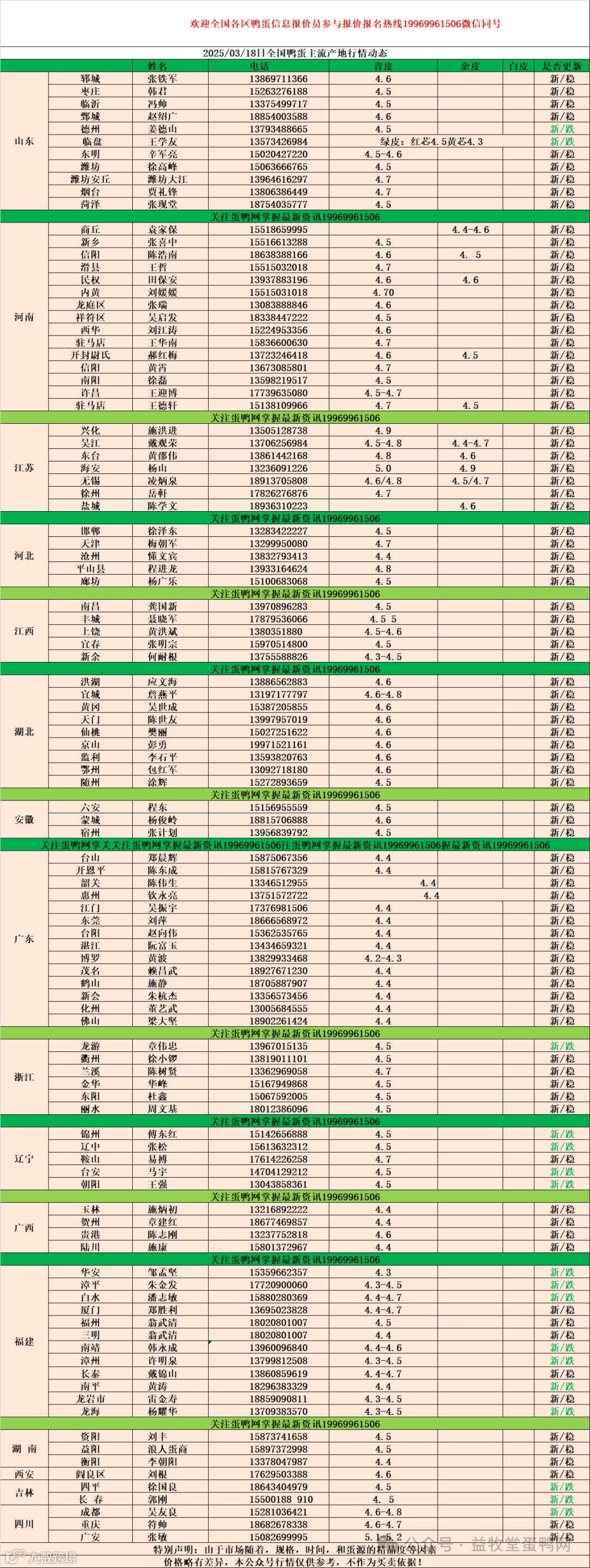 2025年3月18日商品鸭蛋报价 益牧堂水禽信息