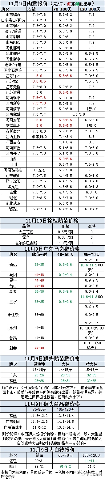 2020年11月09日鹅种蛋价格(元/枚)